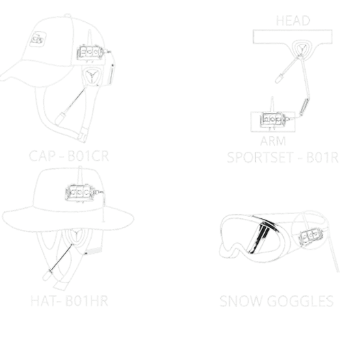 Το καπέλο (B01HR) και το καπέλο (B01CR) διαθέτουν επιπλέον ύφασμα στην αριστερή πλευρά του κεφαλιού για να φιλοξενήσει τη βάση, ενώ τα αθλητικά ακουστικά (B01R) περιλαμβάνουν ένα ξεχωριστό βραχιολάκι S05 που επιτρέπει τη σύνδεση της βάσης και της ενδοεπικοινωνίας στο χέρι.