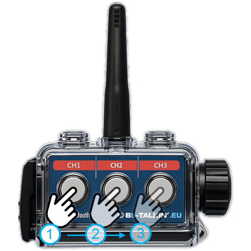 ⚠️È necessario un dispositivo MASTER per comunicare con più di due persone. Seguire innanzitutto la PROCEDURA DI CONFIGURAZIONE DELLA COMUNICAZIONE A 3 VIE.