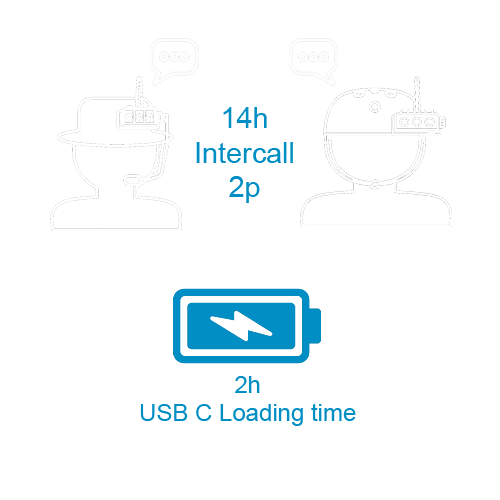 Una ricarica completa richiede circa 2 ore tramite USB-C e garantisce fino a 14 ore di conversazione con 2 utenti.